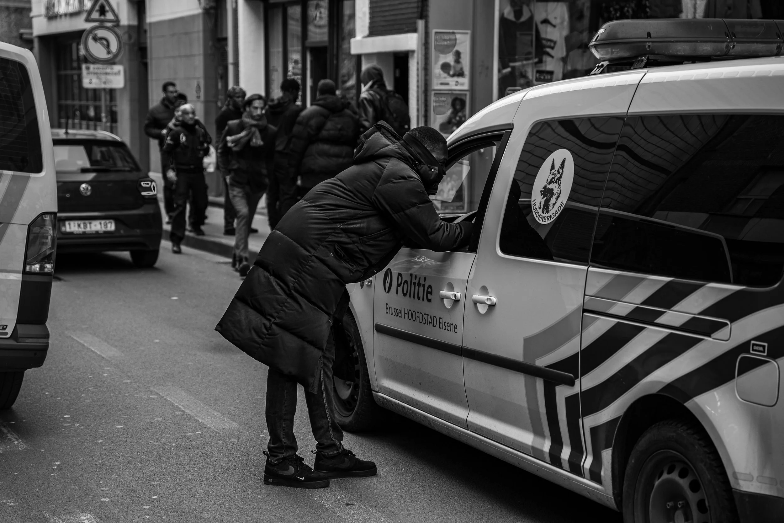 A police car passes in the street. Neo doesn't try to hide, on the contrary, he approaches the car and starts chatting with the driver. It is Fabrice, a white policeman who has learned Lingala. For him, Neo and some of the other dealers are like his sons. After a friendly handshake, he will not check them today and continues on his way.